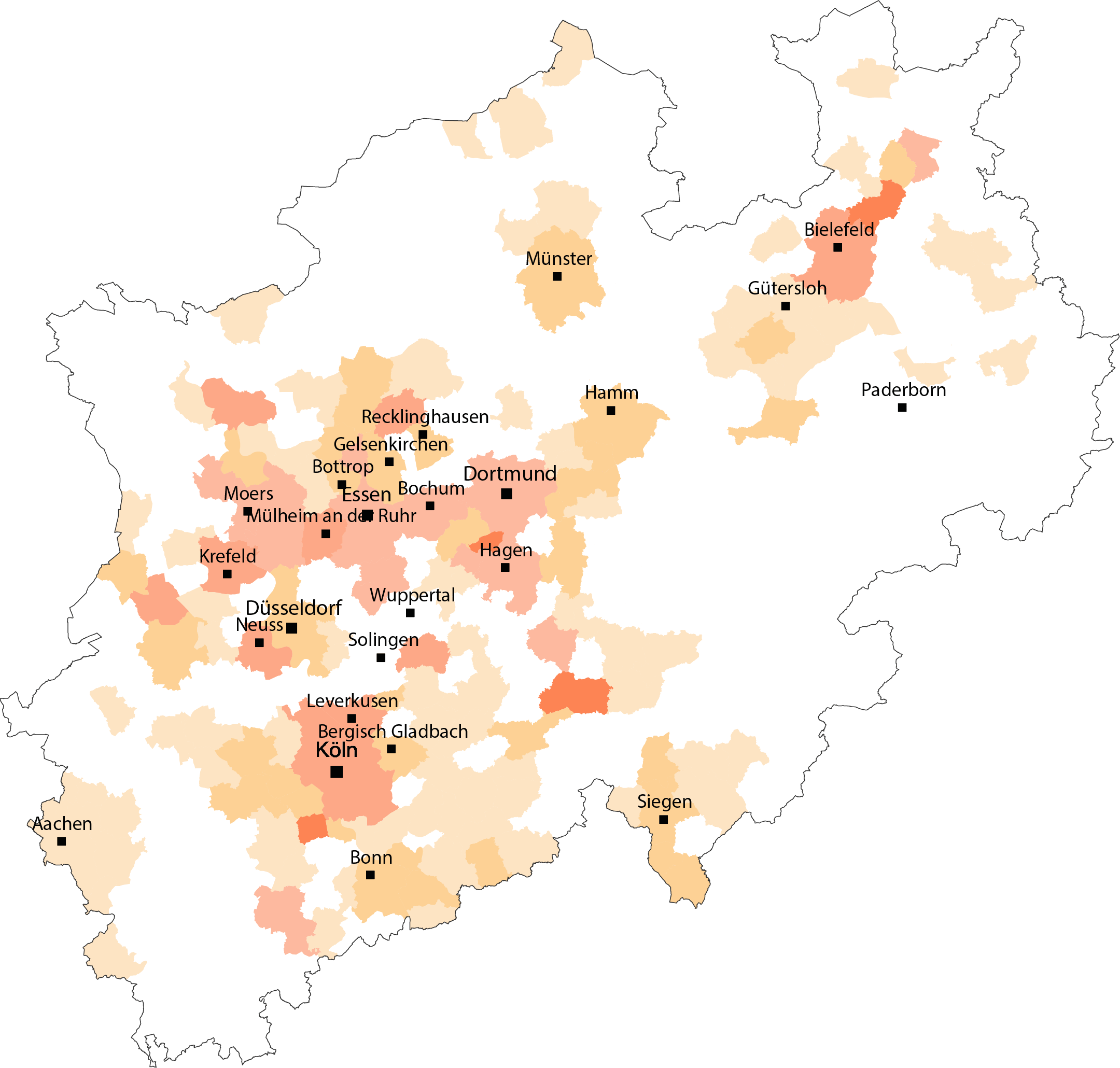 Die Bestände der privatwirtschaftlichen Wohnungsunternehmen liegen zu einem bedeutenden Anteil in Wachstumszentren und Verdichtungsräumen und damit besonders häufig in Wohnungsmärkten, die über die letzten Jahre von einer zunehmenden Anspannung betroffen waren. So sind in NRW über 50 Prozent aller privatwirtschaftlich angebotenen Wohnungen in den zehn einwohnerstärksten Kommunen lokalisiert. Die Bandbreite der privatwirtschaftlichen Unternehmen reicht von hoch professionalisierten Aktiengesellschaften über kleine Privatunternehmen mit Werkswohnungen bis hin zu Investmentfonds. Die privatwirtschaftlichen Wohnungsunternehmen verfolgen in der Regel zwar wirtschaftliche Ziele. Allerdings tragen auch sie mit ihrem preisgebundenen Wohnungsbestand zur Versorgung von Haushalten mit niedrigen Einkommen bei. Im Durchschnitt sind ungefähr 15 Prozent des privatwirtschaftlichen Wohnungsbestands in Deutschland sozial gebunden.