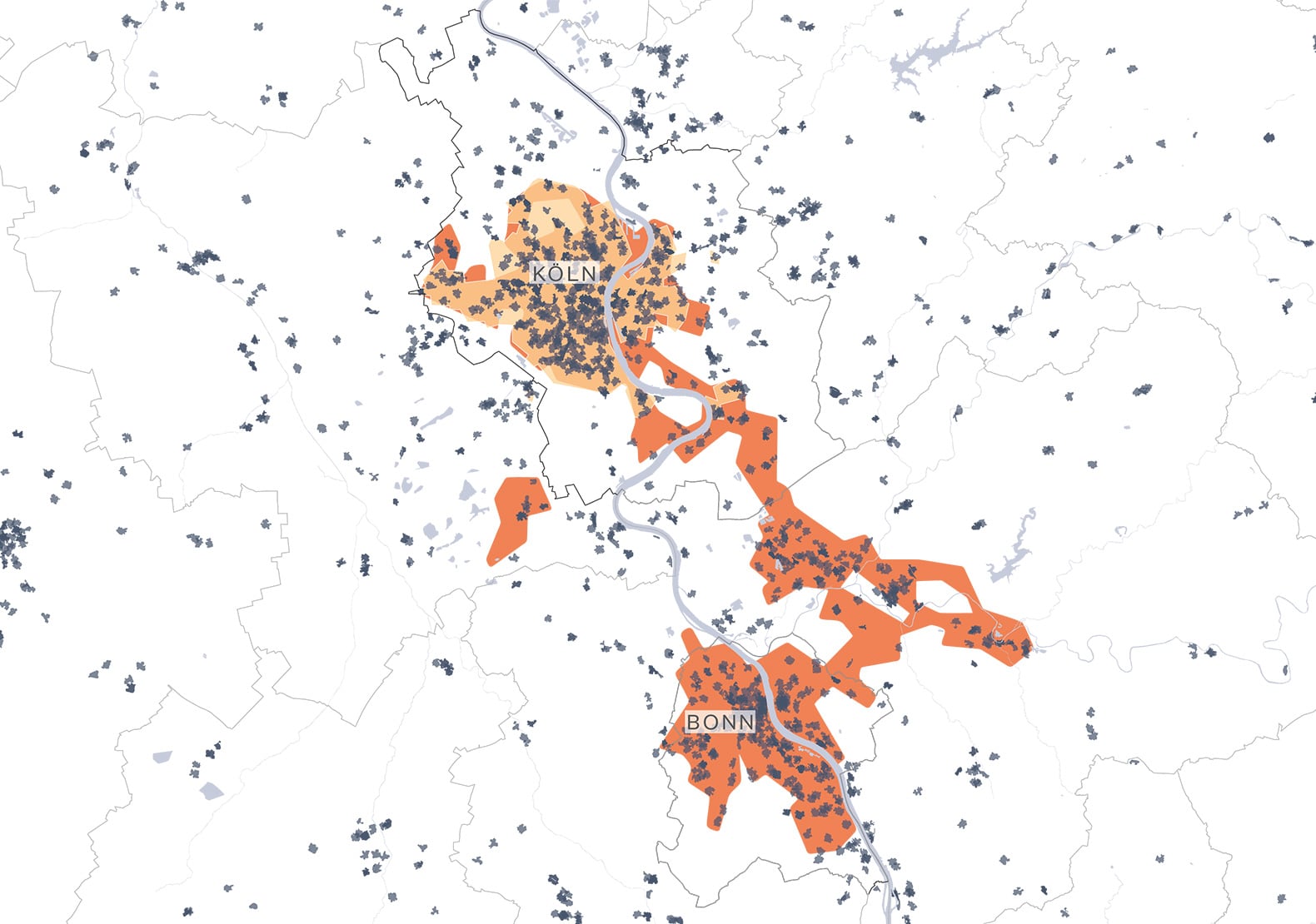 Die Temperaturen in stark verdichteten und versiegelten städtischen Gebieten sind bereits heute ganzjährig höher als in den umliegenden ländlichen Räumen (sog. Hitzeinseln). Die Anzahl der heißen Tage wird in Zukunft weiter zunehmen. Dabei gibt es regionale Unterschiede: Während es in Hamburg zwischen 2036 und 2065 durchschnittlich 5,4 Tage pro Jahr mit Temperaturen über 30°C geben könnte (heute: 3,6 Tage), sind es in Köln 12,2 Tage (heute: 7,5 Tage). Besonders heiß wird es in Ludwigshafen (20 Tage), Karlsruhe (18,7 Tage) oder Mainz, Darmstadt, Heidelberg und Heilbronn (jeweils rund 16 Tage).